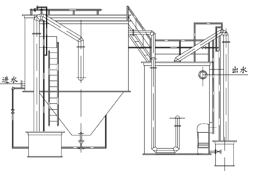 1、沉淀部位,通過集水槽到濾池的水位差,再由吸氣管通向沉淀池排泥,造成排泥的負(fù)壓,到一定周期實(shí)現(xiàn)沉淀池虹吸排泥。